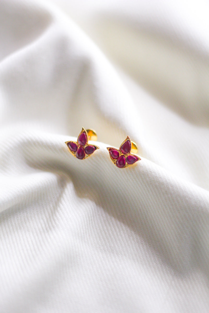Our temple jewelry is crafted in 92.5 sterling silver and set in crystal kemp (red) stones.